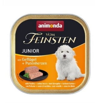 Animonda vom Feinsen Junior to mokra karma dla szczeniąt (od 5. tyg. życia) i młodych, rosnących psów. Ze specjalnymi składnikami odpowiednimi dla psów małych ras.Vom Feinsten dla szczeniąt został opracowany specjalnie dla młodych i rosnących psów jak również dla ras małych. Pokarm ten dostosowany jest do potrzeb żywieniowych w tym trudnym i czułym momencie życia.Z dodatkiem energii, skladników mineralnych i witamin dla optymalnego początku życia.