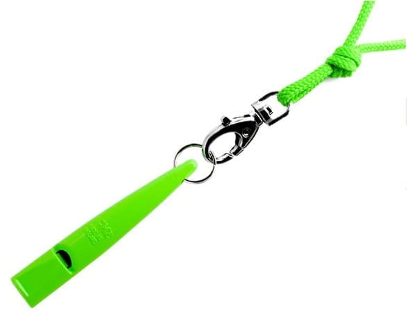 - szukania przedmiotu, którego pies nie zauważył. Do tego celu używa się gwizdka z różnymi sekwencjami, na przykład jeden długi dźwięk może oznaczać „siad” lub „odwróć się i patrz na mnie”, seria krótkich „wróć do mnie”, seria krótkich staccato „szukaj w tym miejscu”, Ważne jest, aby konsekwentnie utrzymywać tak samo brzmiące i spójne polecenia za pomocą gwizdka, wówczas pies zawsze będzie wiedział, czego od niego oczekujesz.