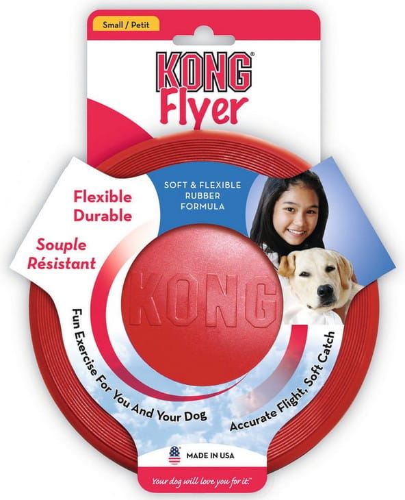 Niezwykle elastyczny wykonany z naturalnej gumy FLYER jest bezpieczny dla psich zębów i dziąseł. Wytrzymały jak wszystkie produkty KONG'a. To frisbee poleci dalej niż wszystkie inne a Twój pies i Ty będziecie się fantastycznie bawić.