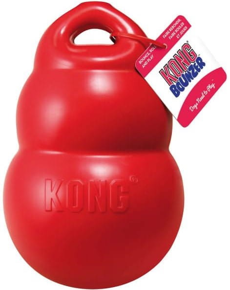 Bounzer to zabawka posiadająca znajomy i charakterystyczny kształt flagowego produktu marki Kong. Zabawka wykonana jest z lekkiej lecz solidnej gumy, która doskonale się odbija i toczy po podłożu. Bounzer nie posiada piszczałki, a uciśnięty z sykiem uwalnia powietrze przez otworek u podstawy. Gdy tylko się wyzwoli powraca do swojego pierwotnego kształtu Uchwyt ułatwia pochwycenie zabawki, dzięki czemu Ty możesz łatwiej podjąć zabawkę, a Twój psiak może ją schwycić i przynieść z powrotem. Zabawka jest typu "oversize", oznacza to, że zamierzenie jest za duża. Kong Bounzer nie jest zabawką przeznaczoną do sesji żucia.