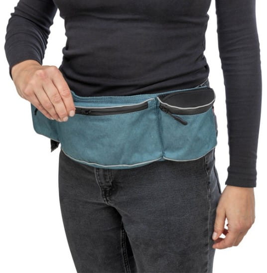 Pas biodrowy wielofunkcyjny Baggy Belt to idealne rozwiązanie dla aktywnych właścicieli psów. Posiada różne przegródki zarówno wewnątrz, jak i na zewnątrz, umożliwiające oddzielne przechowywanie różnych przyborów. Torba jest wyposażona w wodoodporny zamek oraz boczną kieszeń z szybkim dostępem, doskonałą do przechowywania smakołyków. Dodatkowo posiada karabińczyk do załączenia gwizdka lub klikera. Pas główny ma wymiary 24 × 11 × 6 cm, natomiast boczne kieszenie 10 x 11 x 6 cm. Dodatkowym atutem Baggy Belt jest zintegrowany dozownik woreczków na odchody oraz elementy odblaskowe, poprawiające bezpieczeństwo podczas wieczornych spacerów. Wykonany jest z materiałów wysokiej jakości, takich jak bawełna i poliester.