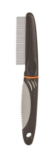 Cechy grzebienia: * zęby obrotowe zapobiegają splątywaniu sie sierści, dzięki czemu pies nie odczuwa ciągnięcia podczas czesania * zaokrąglone zęby dla delikatniejszej pielęgnacji sierści * uchwyt pokryty antypoślizgową gumą