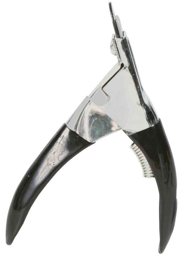 Metalowy obcinacz do pazurów działający na zasadzie gilotyny przeznaczony dla dużych zwierząt. Wyposażony w ostrza wykonane ze stali szlachetnej oraz uchwyt przeciwpoślizgowy.